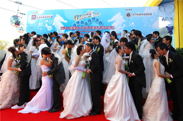 最幸福的事,可能是遇上一生中的最愛。但最浪漫的事,是能夠與一生中的最愛長相廝守,一生一世。日前海洋公園與香港婚禮管理協會合辦了一個以保育海馬為主題的集體婚禮,更請來鄭家富議員為這25對新人證婚,一眾新人在許下婚盟的同時,亦承諾保護同樣一生只愛一伴侶的海馬。