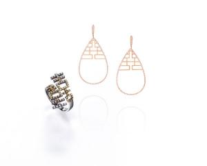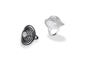如果新娘子穿著傳統中式的裙褂出門,除了長輩饋贈的龍鳳鐲外,Auspicious Collection 吉祥系列「喜上加喜」鑽飾亦是perfect match之選,鑽飾以傳統的「囍」字及西方的建築美糅合起來,令鑽飾可以保留中國的傳統,亦不失現化時尚的風格。其中戒指更是以黑金配漸變色的彩色鑽石,拼湊出「囍」字,顯得有心思之餘,格外名貴。