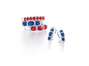 在配襯晚裝方面,Solitaire PLUS系列及Rainbow Connection系列的簡約設計,可以為新娘子加添清雅的味道,前者的螺旋設計概念加上Fancy Cut或八心八箭的美鑽,令層次感非常豐富,俯瞰角度來欣賞戒指,就予人一種鑽石連綿不斷,環環相扣的感覺;至於Rainbow Connection系列則用上紅、藍寶石作為主角,寶石與鑽石互相輝映,散發著如公主般的高貴氣質,浪漫而且華麗。