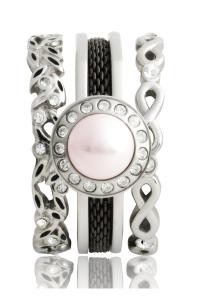 如Van Cleef & Arpels稍為超出你的預算,那麼,北歐丹麥設計品牌Skagen Denmark新推出的Reflections戒指系列便是較實惠的選擇,千多元便有交易。Reflections系列戒指可隨意嵌入或於左右兩邊配以同系款式戒指作點綴,任你mix & match出專屬你倆的款式。在宣傳單張的眾多配搭參考當中,發現精巧的淡水珍珠精鋼戒指中間嵌入閃爍的施華洛世奇水晶,再襯上兩款鑽砂戒指的款式,顏色質感配搭非常特別,令人一見傾心。