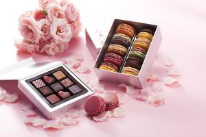 圖二:情人節限定版盒裝雜錦夾心朱古力 (售價:HK$218) 及「巴黎最佳法式杏仁餅」10 件裝 (售價:HK$268) 。