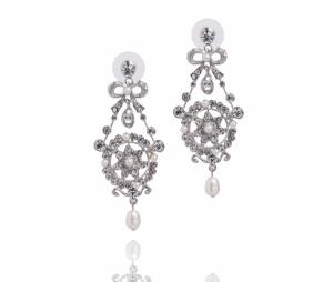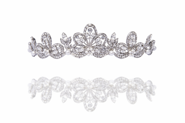 要數到散發著公主氣息的新娘配飾,非小王冠莫屬﹕精緻的花形緊抓著大大小小的水晶,加上小顆珍珠,將高貴的感覺一下子迸發出來,戴在長長的頭紗上份外優雅。此外,吊墜形的耳環亦是必備的飾物之一,蝴蝶結襯上珍珠、六角星形盛載著水晶,非常耀眼奪目。