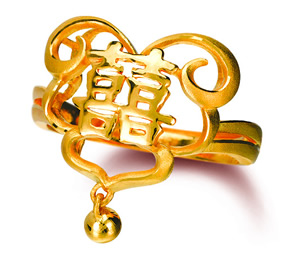「囍」字有雙重喜樂的意思,在傳統中國人的婚嫁禮儀中,意義特別重大。六福珠寶特別以「囍福」為主題,全新推出一系列結婚金飾,以璀璨奪目的結婚金飾,見證堅定不移的金玉良緣。