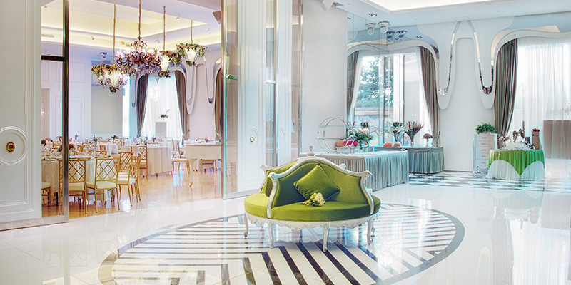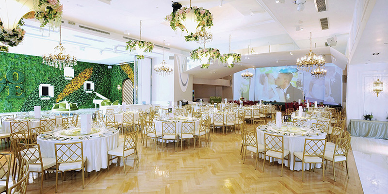 踏進ClubONE郵輪堤岸門檻,有如踏進歐陸優雅園林,3,000呎綠油油的愛意大堂,讓新人拍下愛的印記;穿越貴族式大宅走廊,一覽無遺25呎樓高無柱大堂,空中的歐陸花卉,恍如一個個天空之城懸浮半空;奪目戲院級巨幕,讓來賓一同見證一對新人的歷史時刻。