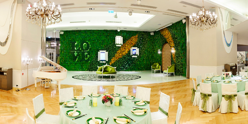 踏進ClubONE郵輪堤岸門檻,有如踏進歐陸優雅園林,3,000呎綠油油的愛意大堂,讓新人拍下愛的印記;穿越貴族式大宅走廊,一覽無遺25呎樓高無柱大堂,空中的歐陸花卉,恍如一個個天空之城懸浮半空;奪目戲院級巨幕,讓來賓一同見證一對新人的歷史時刻。