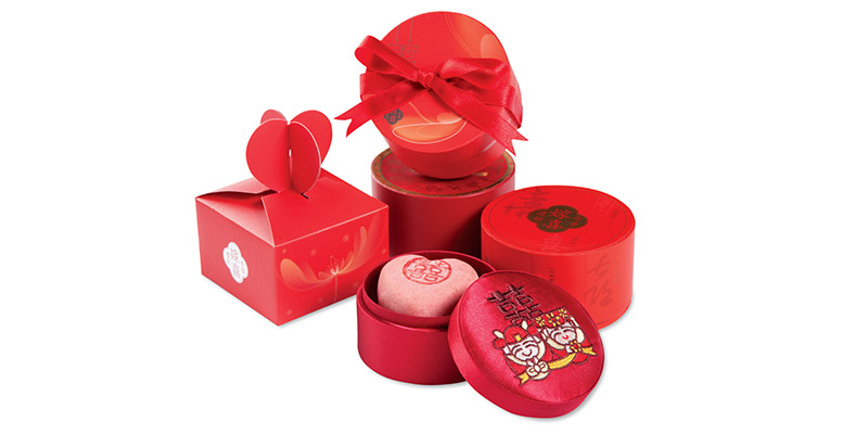 奇華餅家是傳統中式嫁喜禮餅的專家,七十多年來秉承傳統手藝,製作優質喜餅。由選料、製作以至包裝都一絲不苟,產品絕對有品質保證。「奇華嫁喜禮盒」系列共有四款,包括金御喜禮盒、金緣喜禮盒、金雅喜禮盒和金盈喜禮盒,整個系列以清雅瑰麗的胭脂紅色為主調,包裝設計以象徵純潔完美的蓮花點題,彰顯一對新人對彼此「一生一世」的承諾,並喻意祝福每一段美好姻緣開花結果。