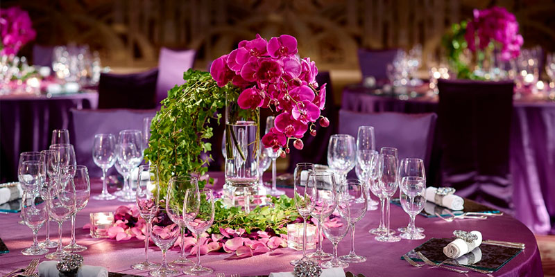 每對準新人都夢寐以求一場浪漫且與別不同的婚禮,香港朗廷酒店經驗豐富的專業婚宴策劃團隊將令這個願望成真。酒店為新人特別設計8款華麗的婚宴主題,分別以金、銀、紅及紫四種顏色展現:以金色為主題的「童夢情緣」及「流金歲月」,盡顯尊貴高雅氣派;銀色「傾城之戀」及「閃爍銀鑽」,貫徹閃爍風采,讓婚宴散發著高貴醉人氣息;紅色主題的「華麗魅影」及「瑰麗醉人」,充滿古典優雅,且極致奢華;以紫色為主題的「花樣年華」及「紫醉金迷」,像童話般的浪漫,讓婚宴顯得份外純真脫俗。