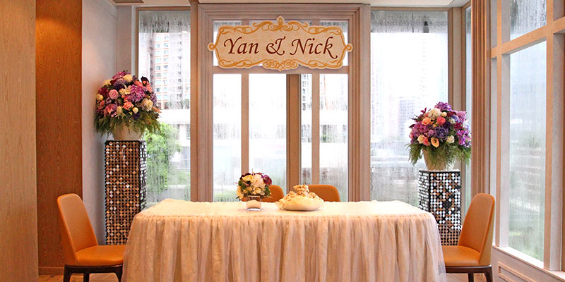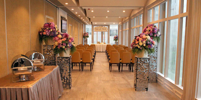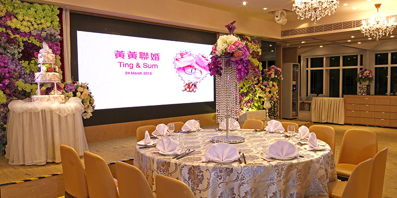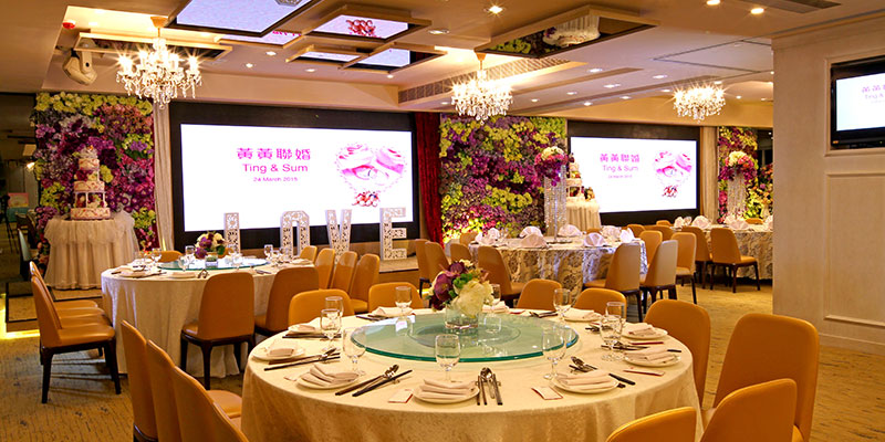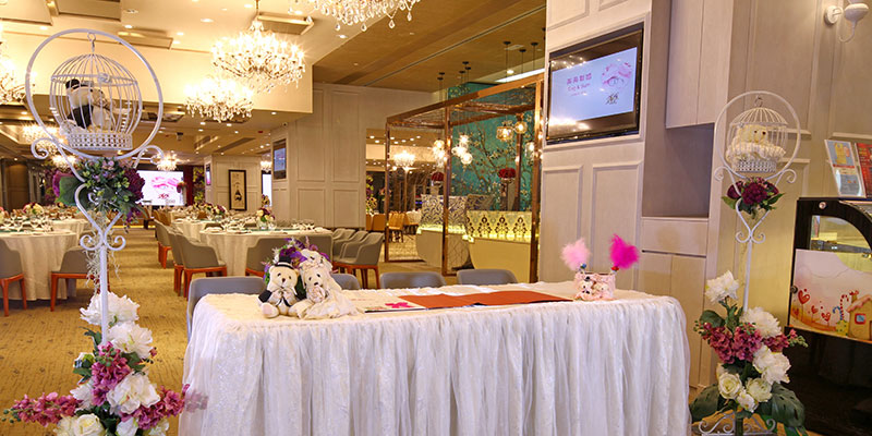 甫入大門,即見清新悅目的花卉牆身油畫,配以造型別出心裁的巨型花瓶迎接賓客。婚宴禮堂設計高雅,木紋牆身和花卉佈置凸顯優雅格調,加上特大LED電視連舞台,用以播放新人的甜蜜片段,締造非凡氣派。此外,鴻星荃灣店自設證婚場地,落地玻璃盡採天然光線,給新人温暖窩心的感覺。