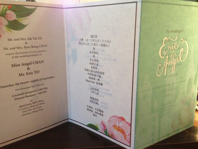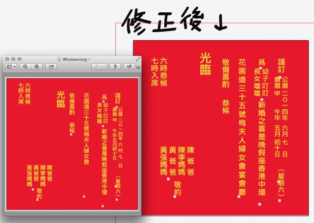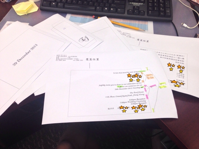今日,男友留在身邊陪我寫埋個喜帖內文。我地以為打字啫,同做Powerpoint差唔多掛~ 估錯了。少少偏差,大大影響咗喜帖嘅觀感! 自已儲返黎嘅幾張帖 (有酒店有酒樓),有D位都錯到移哂位。