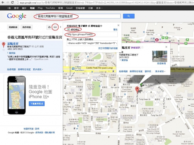 見到wow友印帖話整左個QR CODE... 我都試下整先...因為到時經理級同事都係住九龍揸車入黎元朗飲我果餐 為左方便整定個QR CODE...一拎部電話SCAN就出GOOGLE MAP 我平時搵路果陣就覺得打字入地址搵地圖好麻煩~~一SCAN就去到喇