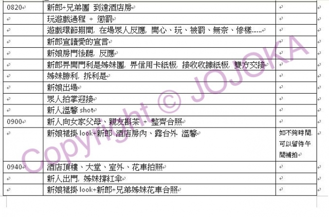 其實big day攝影, 每個專業攝影師基本上都會知道有哪些item係要拍攝的.... 不過我個人比較鍾意咩都寫一餐, 加上搵左位新影snapshot的朋友幫手, 所以我就特別寫左個 check list出來, 除左畀幫手影snapshot的朋友睇之外, 亦順便畀埋 2p1v的攝影師們看.....